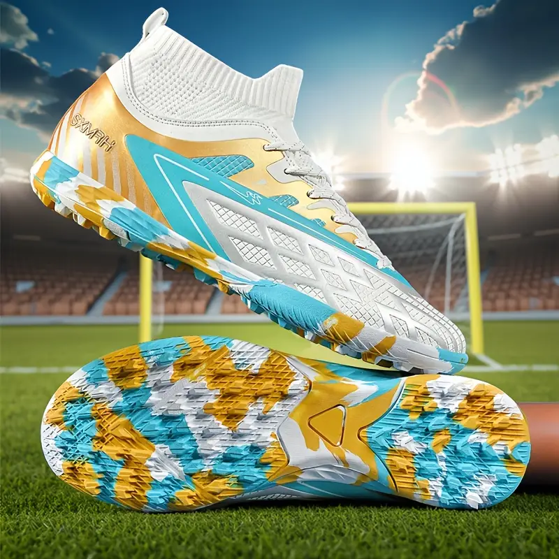 Unlike regular sports shoes, football studs are built specifically for uneven and slippery surfaces like natural grass, turf, or soft ground. The studded outsole digs into the surface, creating grip and stability that flat soles simply cannot provide.